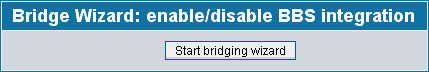 Note: with each step in the wizard, some information is being written to the coppermine database. Unlike other wizards (mostly on your local machine), the bridge manager doesn't have a ""cancel"-button! Once you have enabled bridging and everything is working fine, you shouldn't change any values just out of curiosity, as they will get written to the database, which might result in a bridging that used to work not working any more after "playing" with it.