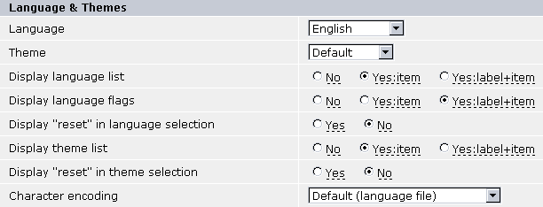 Character set Determines the character set used - filling the HTML tag . Do not change unless you really know what you're doing. |