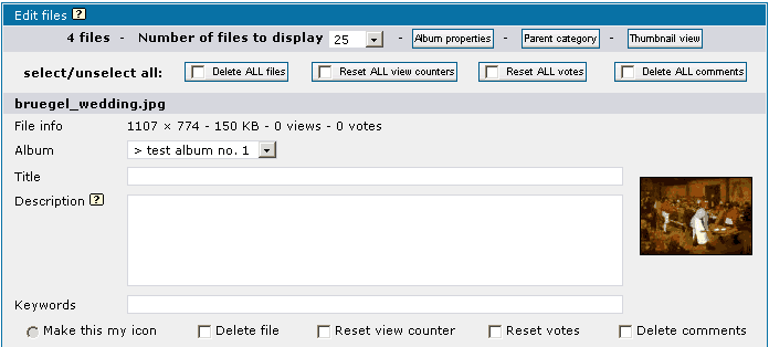 The same applies to picture rating and comment posting. If you have installed the script succesfully but are having trouble getting it working properly you can enable the "debug mode" on the Config page. In this mode, the script outputs most of the warning/error messages produced by PHP in addition to some debug information. This can provide valuable information to understand what is wrong. 2.2.1 Basic concepts