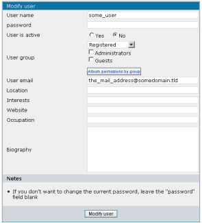 Warning: If you already have users and custom groups in your coppermine database when you enable bbs integration, be aware that they will be lost. If your coppermine users have already created private albums and uploaded pics to them, they will be lost as well!