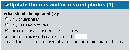 The "theme.php" file contains all the HTML templates used by the script. You can edit them, as well. When making modifications to these templates, be careful that you do not alter the lines that start with <!-- BEGIN xxx --> and <!-- END xxx -->. These lines are often used to identify the start and end of specific code blocks that the script will use to display your gallery.